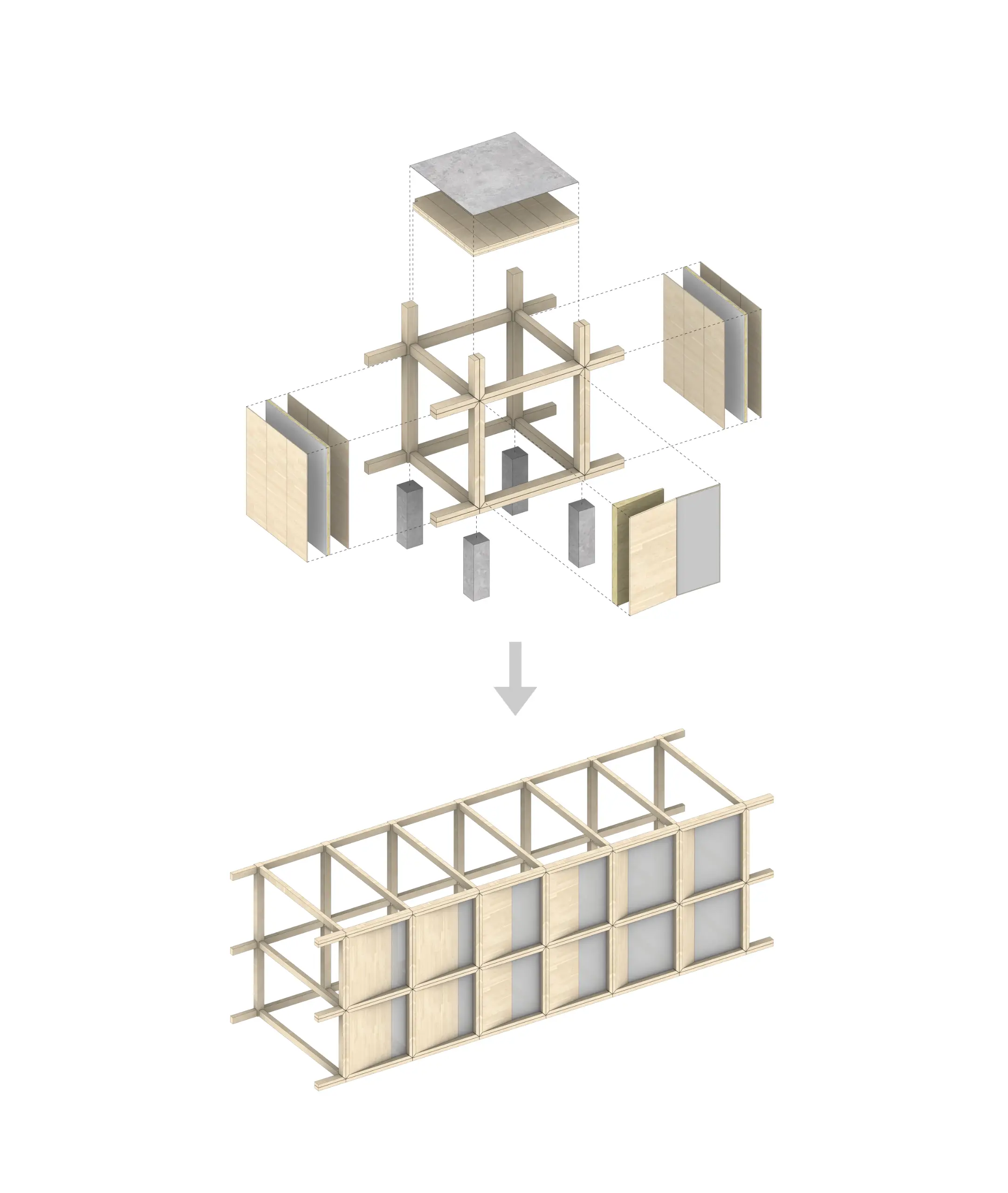The contemporary timber structure highlights both the region’s authenticity and its innovative potential, aligning Ukrainian progress with Western advances in architecture–engineering–construction (AEC). Across the EU, mass-timber technologies (mass-timber columns, CLT walls/floors, glulam beams) are now widely used. Ukraine is also seeing more public buildings made of timber — a material capable of meeting structural and fire-safety requirements while being far more sustainable than concrete or steel. The material strategy aligns with cradle-to-cradle principles. The modular structural system allows future spatial adaptation without demolition or unnecessary expenditure.