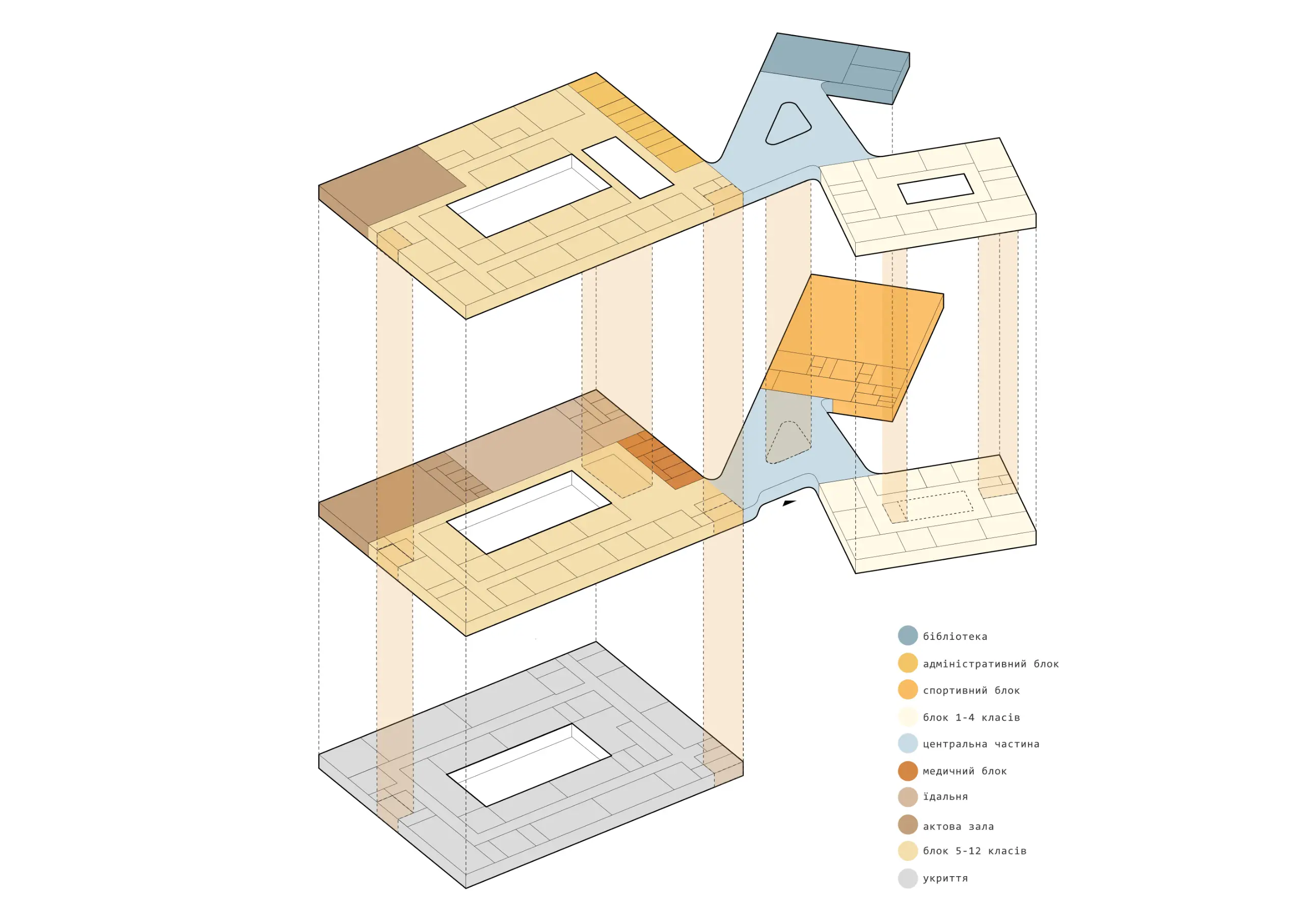 Thus, the proposed secondary school on Yevpatoriiska / Kozhelyanka streets is intended to become a high-quality example of a modern educational facility for the city, incorporating contemporary principles of sustainability, circular economy, efficient prefabricated construction, and a forward-thinking environment for learning, living and community integration. In this way, genius loci (the spirit of the place) merges with the zeitgeist (the spirit of the time).