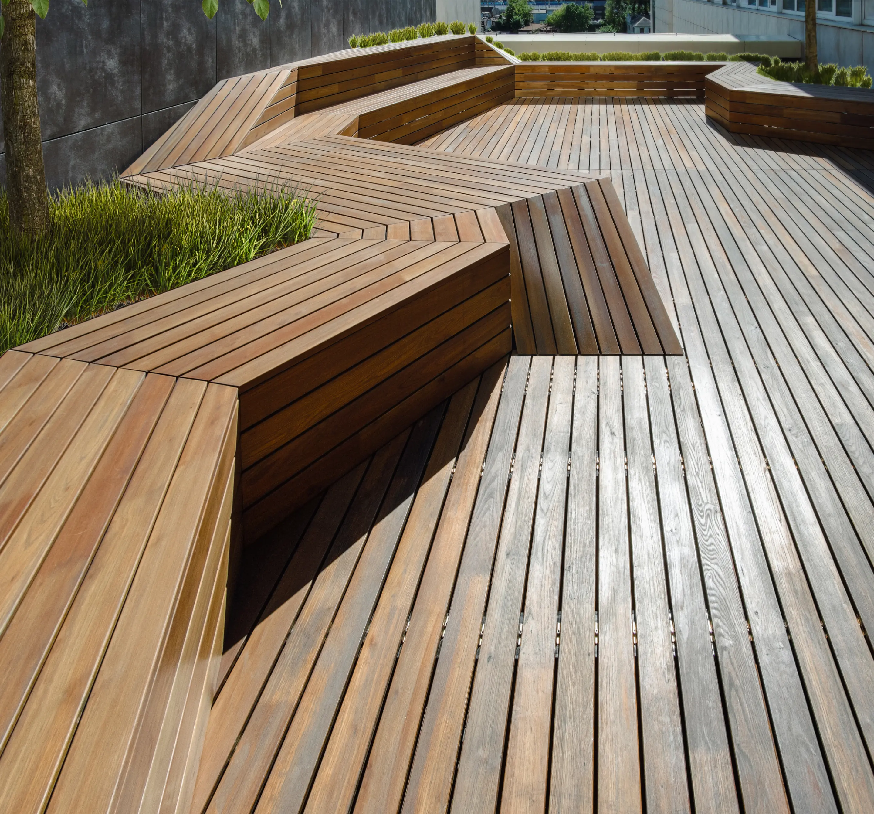 A natural material - wood was chosen to make the functional surface of the roof, which is the embodiment of the concept of cradle-to-cradle, which, in fact, in this case means taking materials from nature and the possibility of returning them back. The concept of local materials, known from the treatise of Vitruvius, which is economically (and now environmentally) profitable given the minimization of logistics and transport emissions, resulted in the use of Ukrainian acacia, which will serve on the Coexistence Rooftop for decades and is one of the most resistant to weather influences and outdoor use.